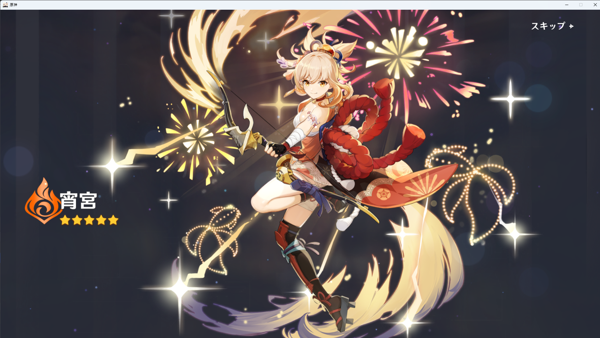 ガチャ画面を開き、そこに表示されているのは宵宮。雷電ではない。