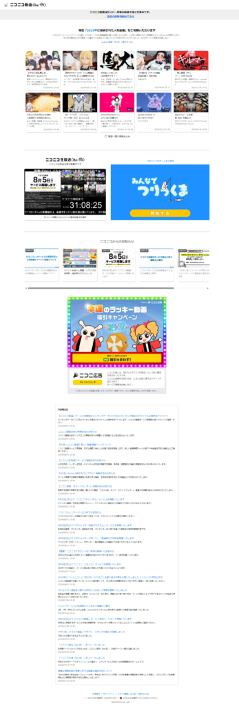 ニコニコ動画が 8月5日 15:00頃再開されることが発表。