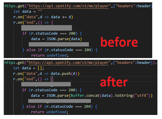 「String型の変数にchunkデータを追加するんじゃなくて、Buffer.concatを使いなさい」って話らしい。