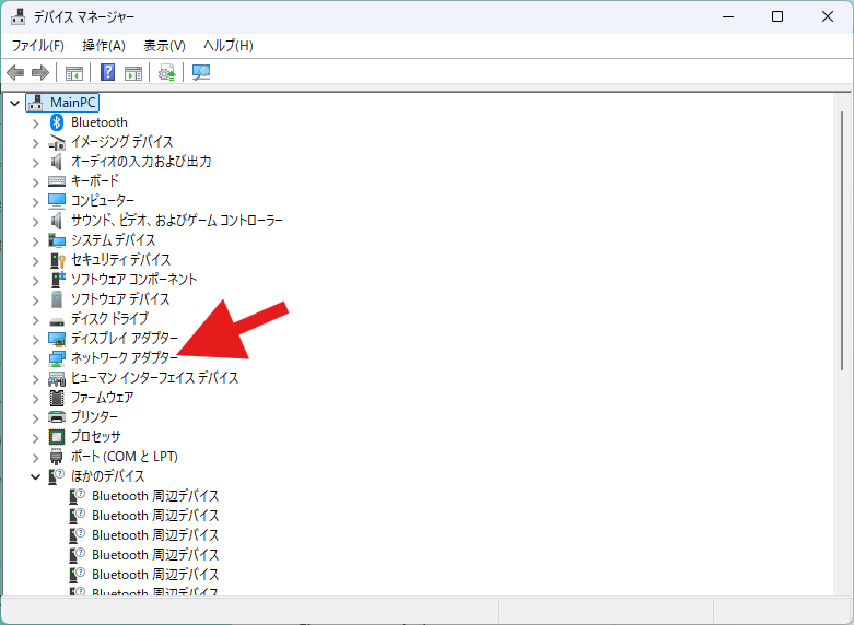 「ネットワークアダプター」を選択して、ダブルクリックしてください。