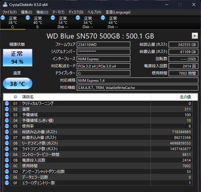 ※Crystal Disk Info、以下「CDI」と呼ぶことがあります。(実際に使われている略称です)